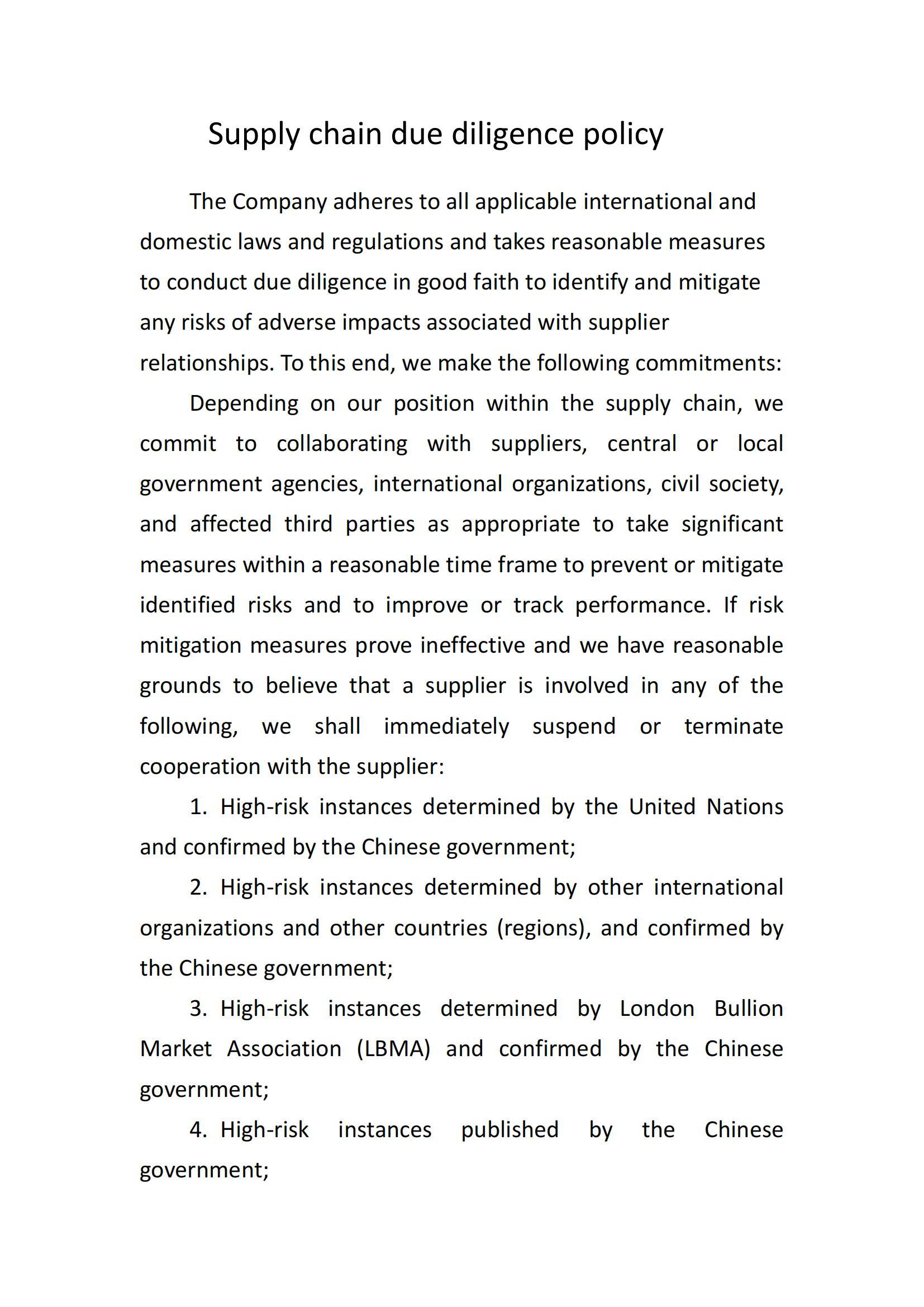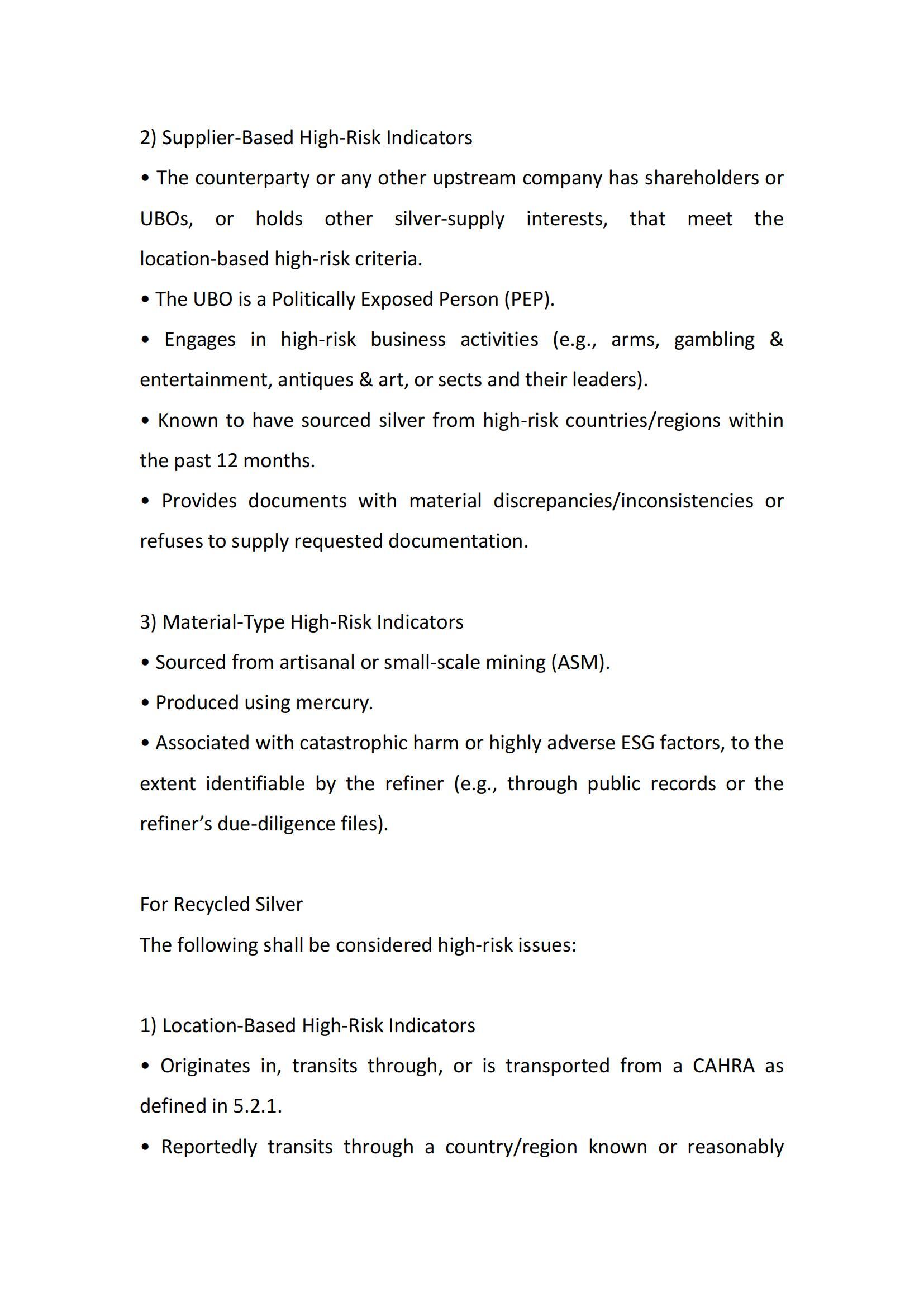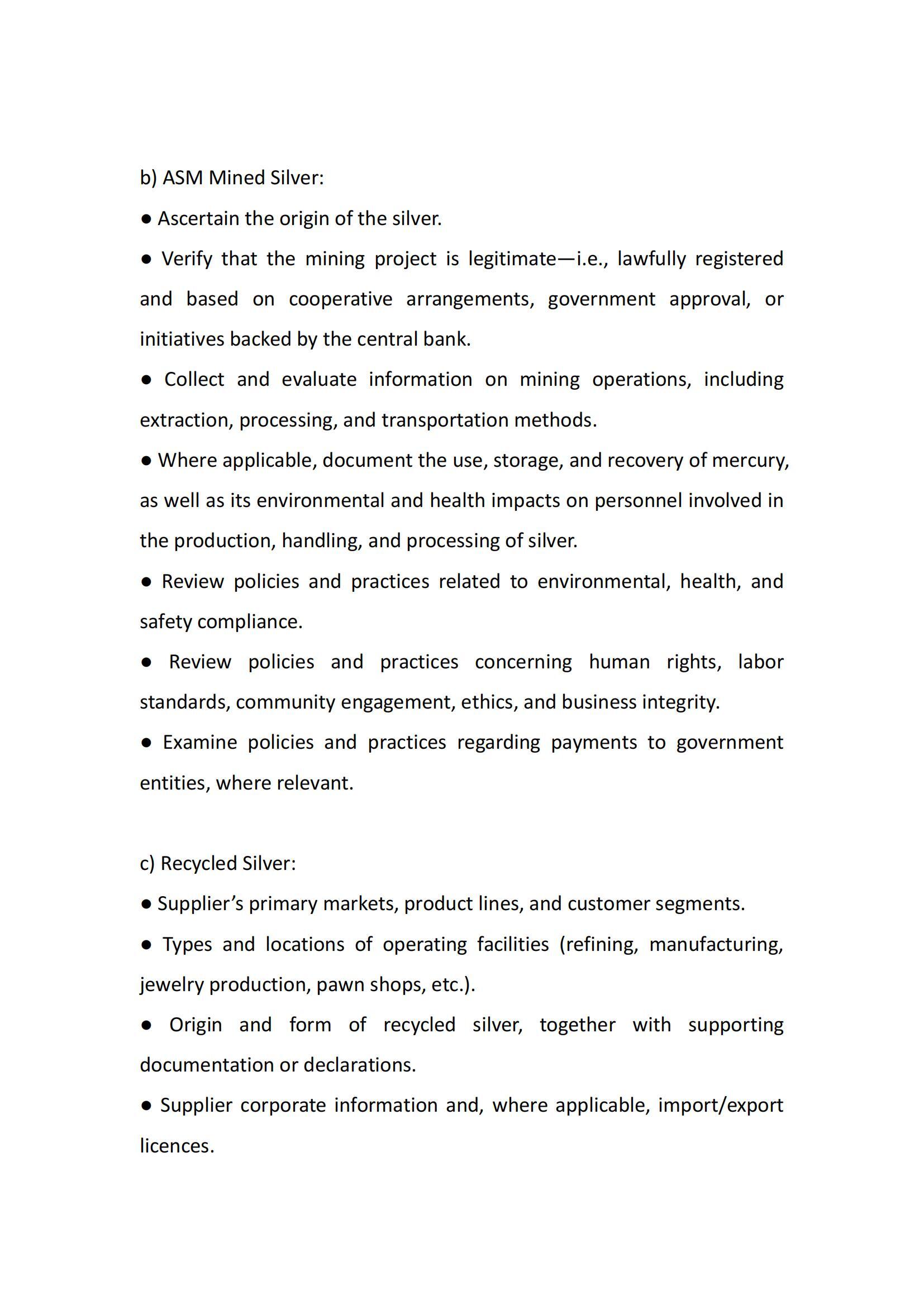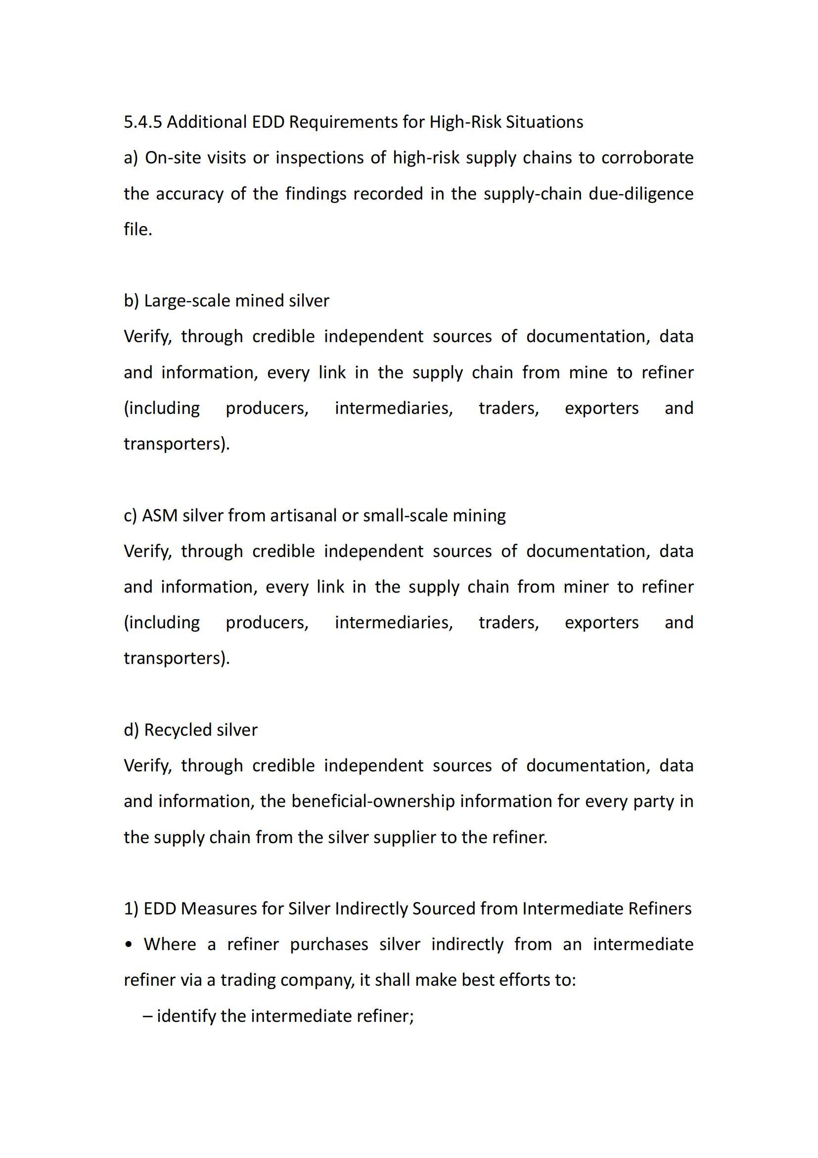 Silver Supply Chain Due Diligence Management Measures