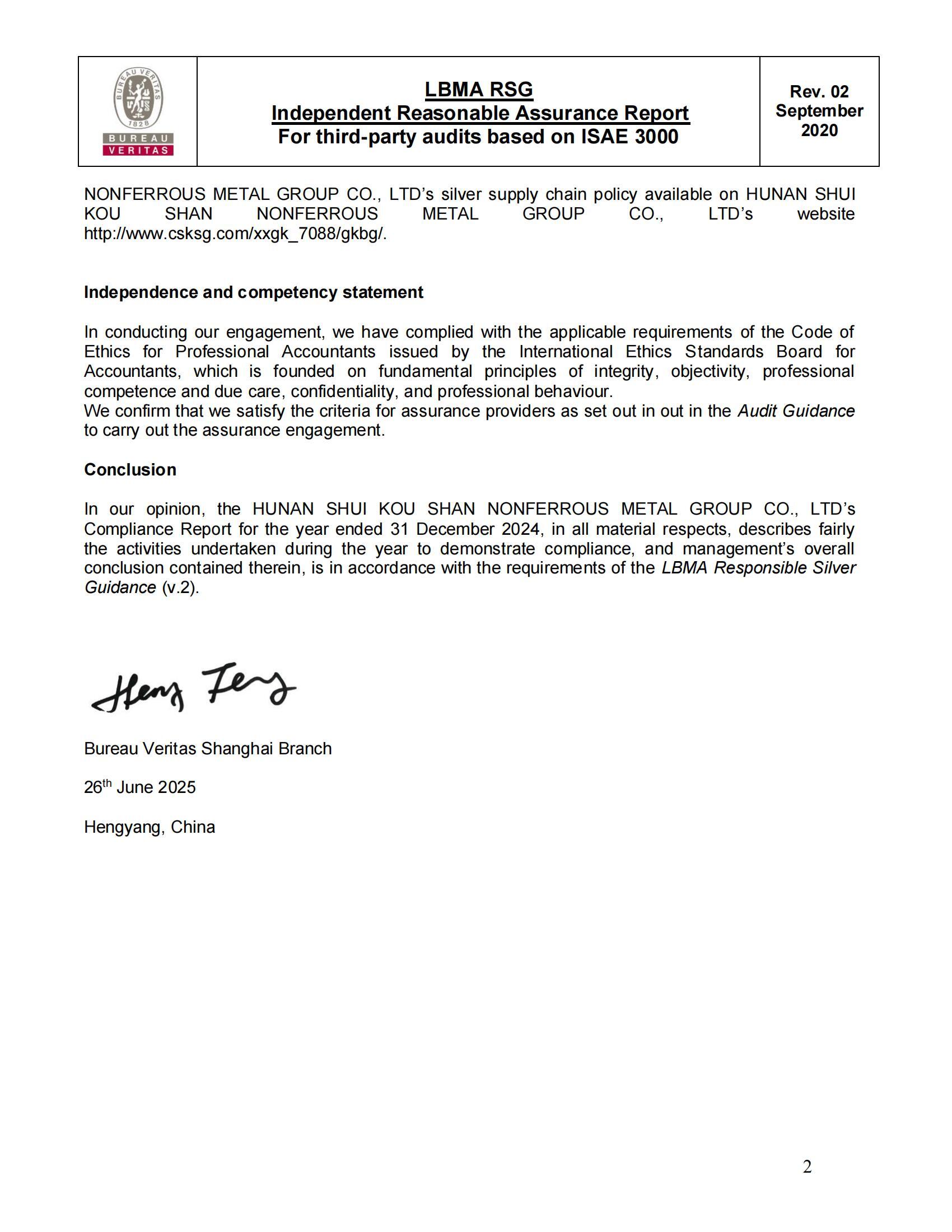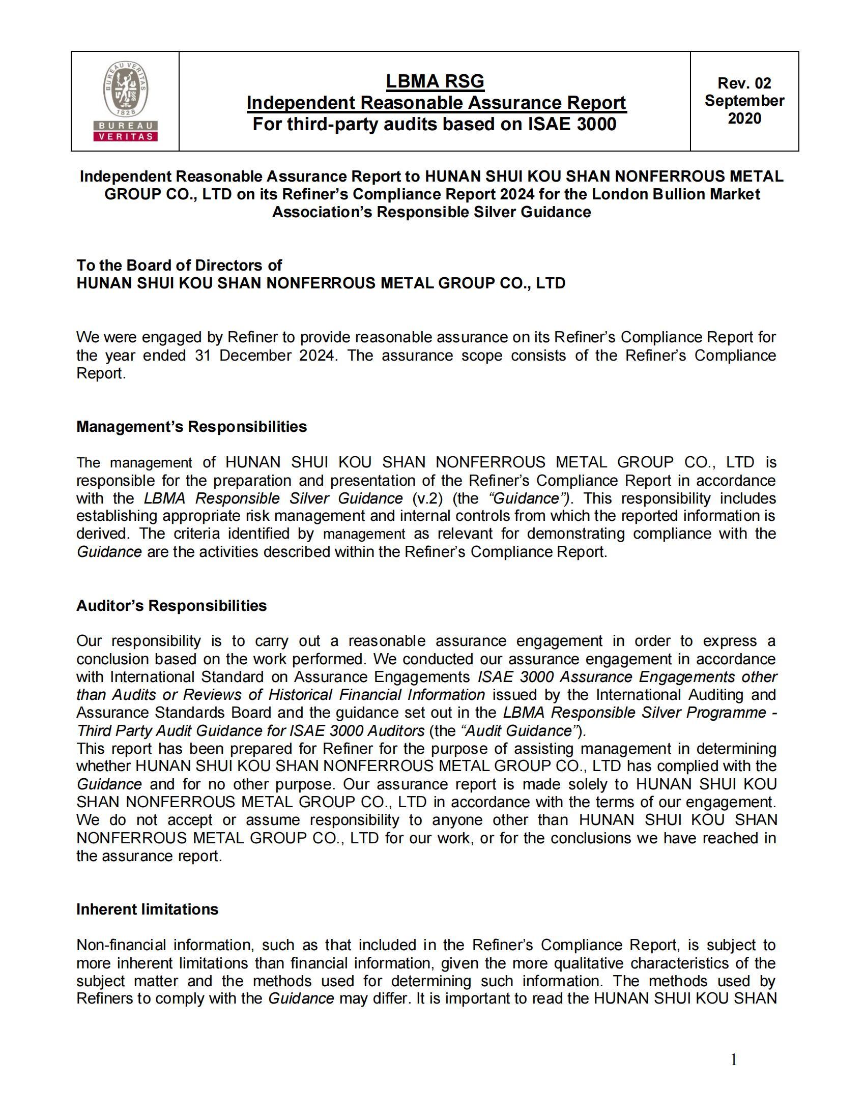Independent Assurance Report (Public)_Silver_HUNAN SHUI KOU SHAN NONFERROUS METAL GROUP CO., LTD